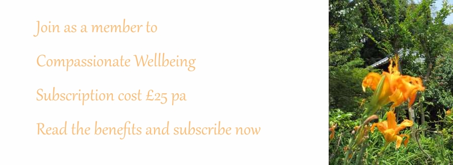 Become a member of Compassionate Wellbeing. Subscription is £25.00 now for two years.